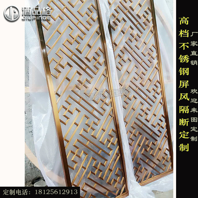 不锈钢屏风也叫不锈钢隔断,又或者不锈钢花格,只是叫法不一样而已。隔断屏风在中华民族历史悠久、源远流长、家喻户晓,曾经是帝王贵族、地主豪绅等的专属品,同时也是他们身份与地位的象征。经过一段漫长时间的发展,隔断屏风开始普及到民间,走进了寻常百姓家,成了家具装饰的重要组成部分,并且成为一种新的趋势与潮流。经权威机构调查发现,不锈钢隔断屏风在建筑装饰市场中所占的比重越来越大,主要应用于酒店、餐厅、会所、别墅、会馆、KTV、家居、广场、超市等。