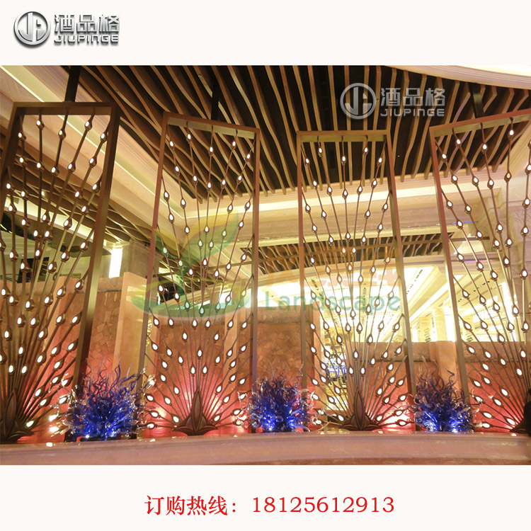 不锈钢屏风在类型上有中式花格样式,其应用很广泛,如在栏杆、天花装饰、幕墙装饰等。然而在装饰工程中使用的不锈钢屏风花格,一般可以分为二种,一种是以不锈钢管(扁管、方管、圆管)拼接而成的中式或者欧式花纹图案,在花格中间可放置彩色玻璃或其它的装饰件。别一种是以不锈钢板雕花而成的中式格图或其它的花图。不锈钢材料自身也可以在表面上做涂漆、烤漆等,目前最流行的是真空电镀上颜色,这种工艺不但高端上档气,并且可以保持30年不掉色,不褪色。