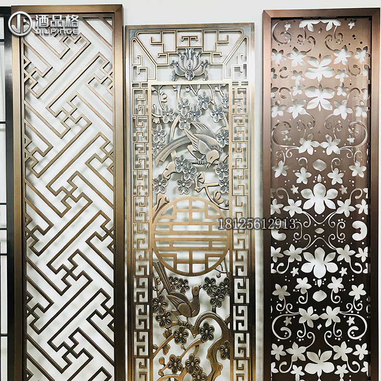 酒品格拥有雄厚的实力,是一家大型不锈钢屏风专业加工厂家,本厂采用先进的加工设备,加工范围包括:电镀(真空镀)、水镀、蚀刻、压花、剪、折、刨、弯、焊接、抛光等。主营产品包括:不锈钢屏风,不锈钢门窗 不锈钢镂空,不锈钢工程立柱, 不锈钢博古整体楼梯护栏,不锈钢镂空,金属浮雕壁饰,不锈钢装饰制品等,为客户提供设计精美造型独特的不锈钢等装饰一系列产品。拥有国内外技术领先的精英、制造工艺及科学管理模式。以质量第一、信誉第一、客户第一为宗旨,在市场上享有良好的声誉。5、不锈钢表面有彩虹纹,是过多使用洗涤剂或油引起,洗涤时用温水中性洗涤可洗去。