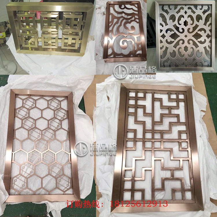 酒品格公司主要生产不锈钢屏风,其清新脱俗,镂空设计带有传统意蕴适应于(酒店,古典餐厅,卧室,办公室,高档别墅、大型商厦、星级宾馆、写字楼、场馆、卧室,办公室,休闲空间)等,装饰效果尊贵自然,美仑美奂,优雅不凡,优越的空间不仅让您体验尊贵,而且成为您身份与生活方式的象征。专业生产不锈钢屏风、镂空不锈钢屏风、隔断不锈钢屏风、不锈钢屏风镂空雕花、酒店不锈钢装饰屏风、客厅装饰屏风、家居屏风、会馆不锈钢屏风等。