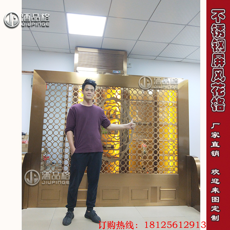 酒品格生产的不锈钢屏风,隔断,采用最新的不锈钢生产工艺和先进生产设备,在焊接的精密度,表面打磨和工艺水平上处于同行前列,专业生产的高品质不锈钢屏风,不锈钢背景墙,不锈钢花格酒店装饰工程等产品具有做工精细、弯曲度好、光泽度好、美观、坚固、耐用等特点。