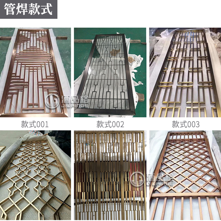 别看不锈钢屏风隔断就是一个焊接式框架,其实加工环节相当复杂,每一个规格都要算精细,焊缝不能明显,打磨要精细!在焊接的同时一定要注意不能把已经焊,好的表面划伤,完整的表面上色后才能没有痕迹!另外包装也是大问题,在最后的程序中,如果搞花了那就是太可惜了。