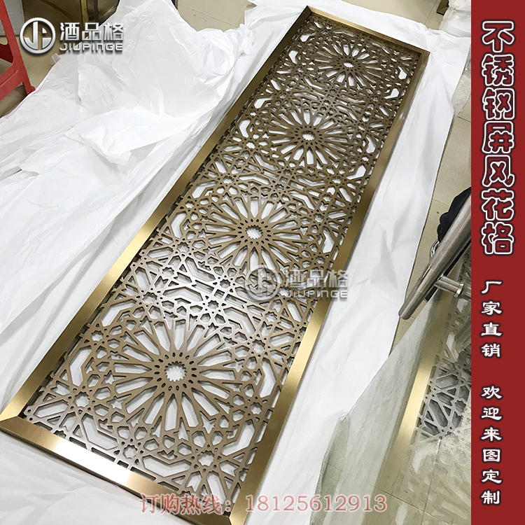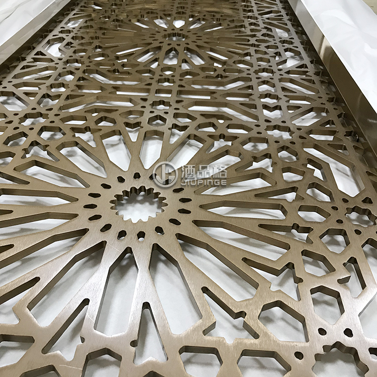 玫瑰金不锈钢镂空屏风以其独具的造型魅力和醇厚的文化内涵而流传于世,沿袭至今。像五星级及以上的酒店都会选择金属屏风,尤其是酒店大厅不一样的要突出酒店的高端大气奢华档次,就要选颜色明亮的玫瑰金或钛金,款式可以自己设计的图形,也可以选择具有财富象征的金钱花屏风,这样的风格更能衬托出酒店的奢华。
