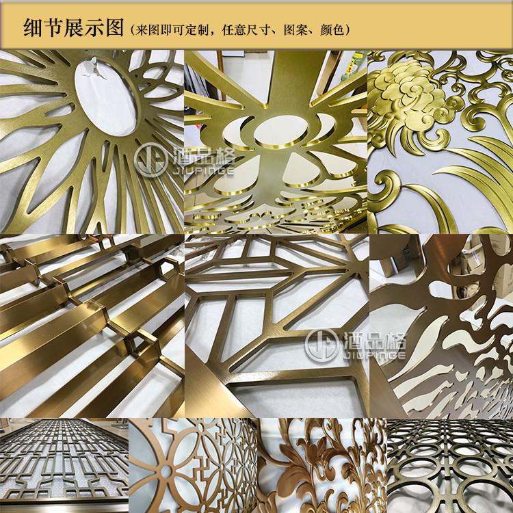 佛山酒品格金属制品有限公司专业生产各类不锈钢系列仿古屏风、工艺屏风、古典屏风,中式屏风,落地屏风、彩色不锈钢激光镂空屏风,卫生间隔断、玻璃隔断 、不锈钢隔断,可根据客户图纸为用户设计一整套方案,为用户提供意见,用好的服务来满足用户需求,屏风一般陈设于室内的显著位置,起到分隔、美化、挡风、协调等作用。它与古典家具相互辉映,相得益彰,浑然一体,与室内家具饰物相互协调成为室内的另一道风景线。
