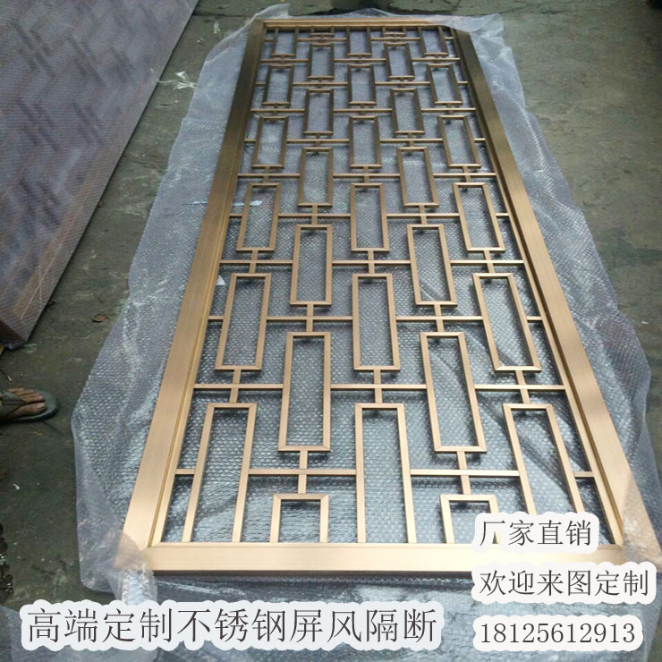 钛金不锈钢屏风,不锈钢锆金色屏风隔断,拉丝古铜色中式屏风,简约田园屏风花格镂空,欧式雕花屏风。不锈钢屏风隔断的形式多种多样,简约卧室的隔断,欧式花格屏风隔屏,繁复精致的造型,赢得更多中式豪华装修和欧式装修设计师们的喜爱。